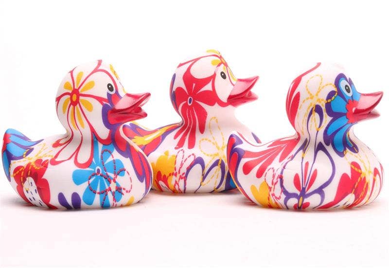 Wonderfully colorful rubber duck in flower design. The special thing about this rubber duck is that the print varies from duck to duck. Each rubber duck is therefore unique.